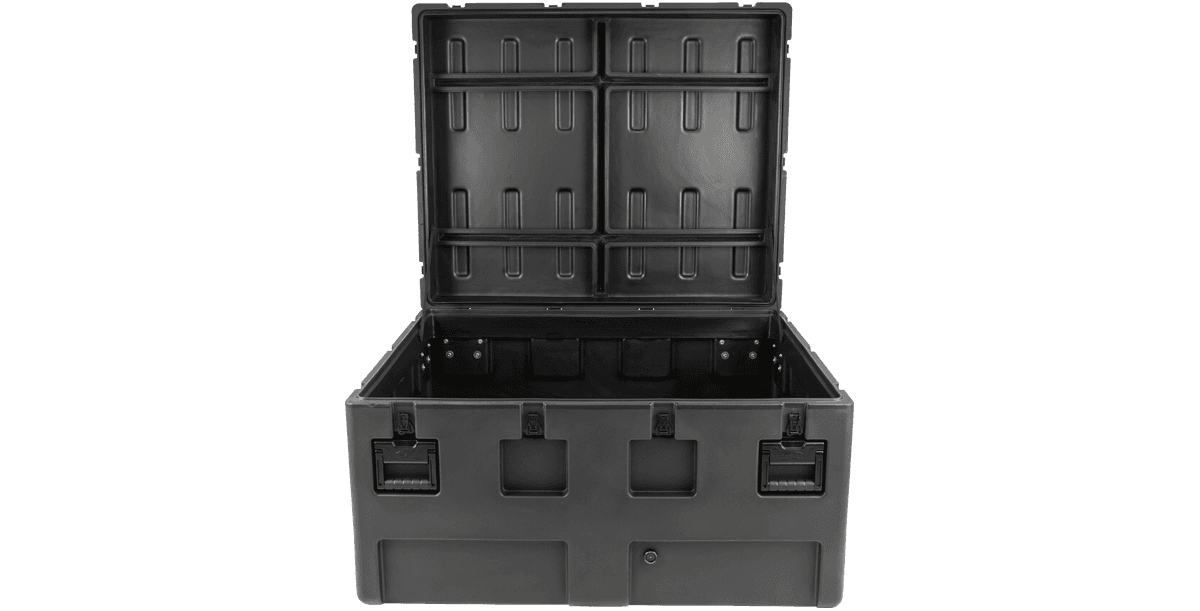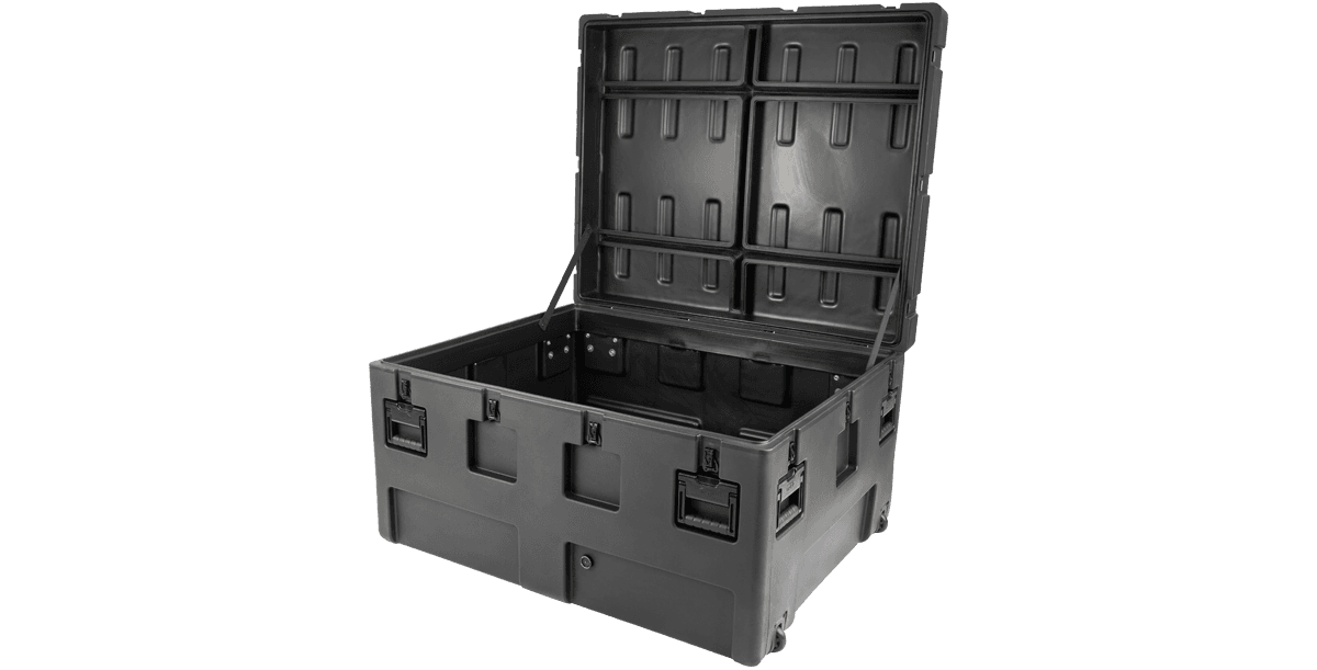 rSeries Mil-Standard cases have been designed to meet the most exacting military specifications. They are roto-molded of impact-resistant/UV stabilized LLDPE for strength and durability, featuring airtight and waterproof construction with solid stainless steel latches and hinges that will withstand the most demanding shipping conditions. rSeries cases come standard with an empty interior, and some models are available with: cubed foam, layered foam, padded dividers, and a pull handle with wheels.