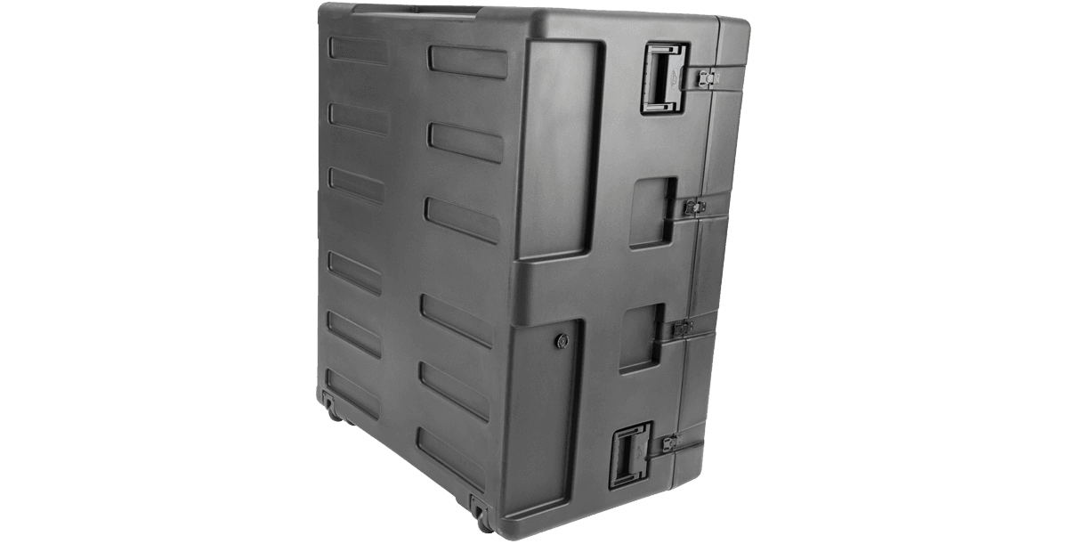 Part of SKB's STAC (Stackable Transport Accessory Case) System. These rSeries sizes are designed and optimized to securely stack in many combinations on a standard shipping pallet. Offered standard in black, they are also available with edge wheels and in custom colors. This size features built-in wheels. Contact your sales representative for more information.
